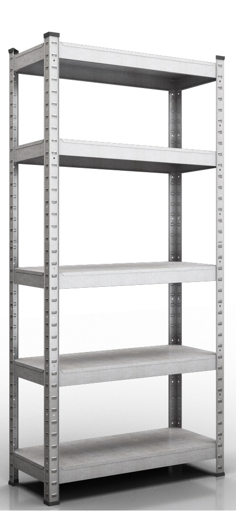 Металевий каркас з оцинкованої сталі 1,2мм; 5 полиць ДСП; З'єднання: на болтах
